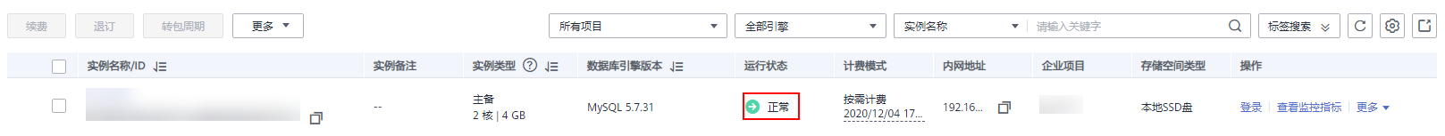 检查办法:请在控制台检查云实例状态是否为“正常”。