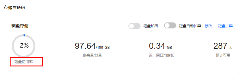 - 进入“概览”页面。在“存储与备份”模块查看存储空间使用情况。
