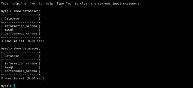 - 恢复结果确认,等到10分钟左右,再次执行show databases命令,确认连接是否正常。