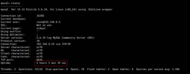 - 使用rds for mysql命令行客户端连接数据库,执行status命令,确认数据库实例是否频繁重启。