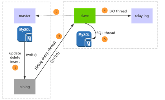 - 主节点(master)中有数据更新时,会按照binlog格式,将更新的操作以event形式写入到主节点的binlog中。event有多种类型:insert、delete、update、query等。