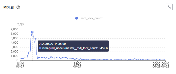 查看ces指标行锁等待个数、mdl锁数量,下图仅供参考: