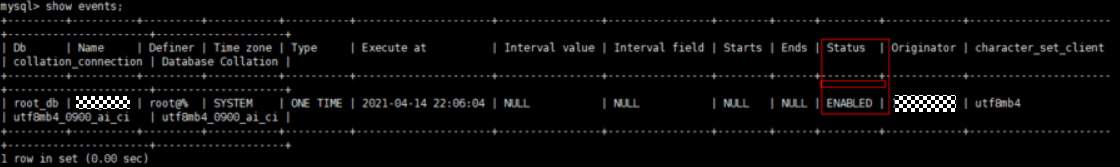 - (推荐)重新创建事件定时器,在创建事件定时器时不使用disable on slave语法。启用定时器后,rds for mysql的主库默认将“event_scheduler”参数设置为“on”,而备库则设置为“off”。这样可以确保事件定时器仅在主库上执行,并在备库上自动禁用,无需在创建事件定时器时使用disable on slave语法。