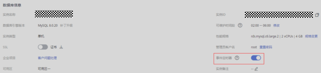 - 在实例“概览”页面,检查事件定时器开关是否打开。