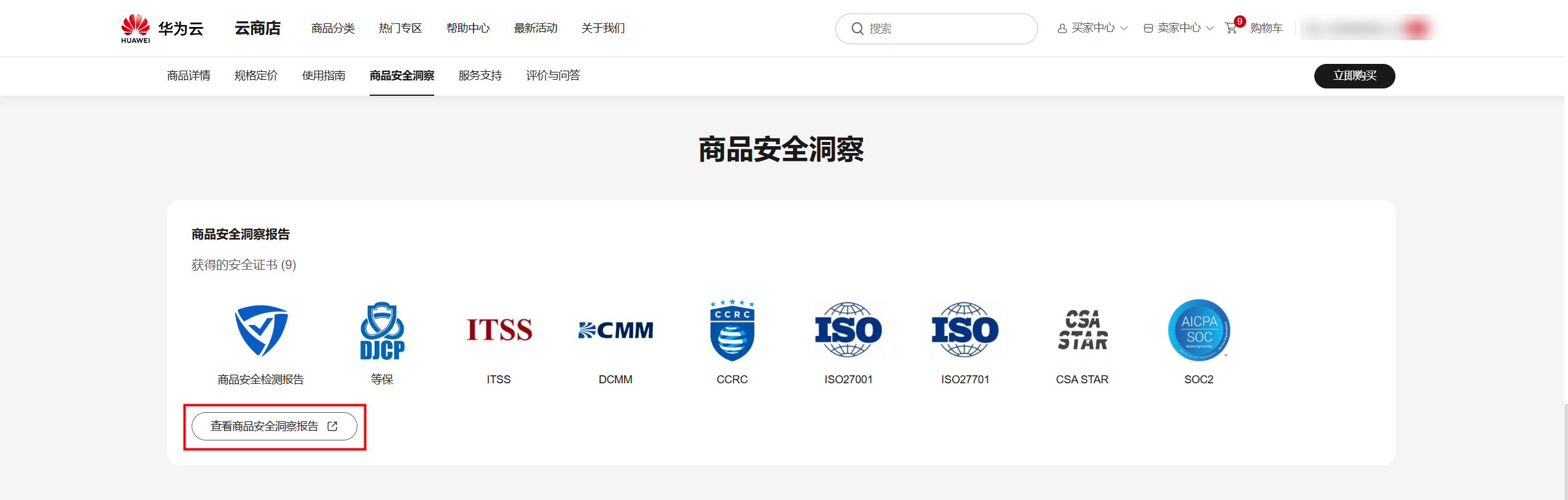- 单击查看:打开商品详情页,单击“查看商品安全洞察报告”。