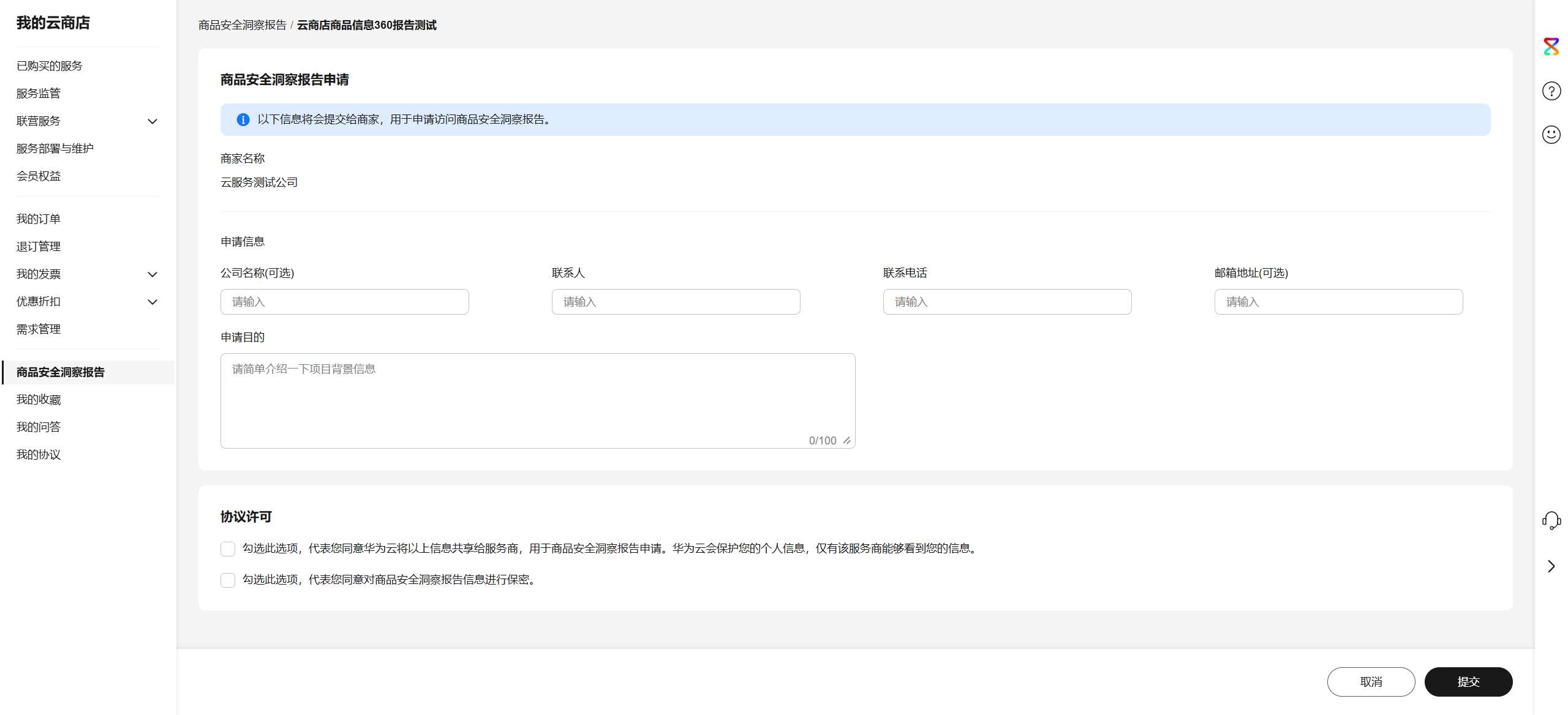 - 等待审批:单击“提交”申请,等待商家审核。