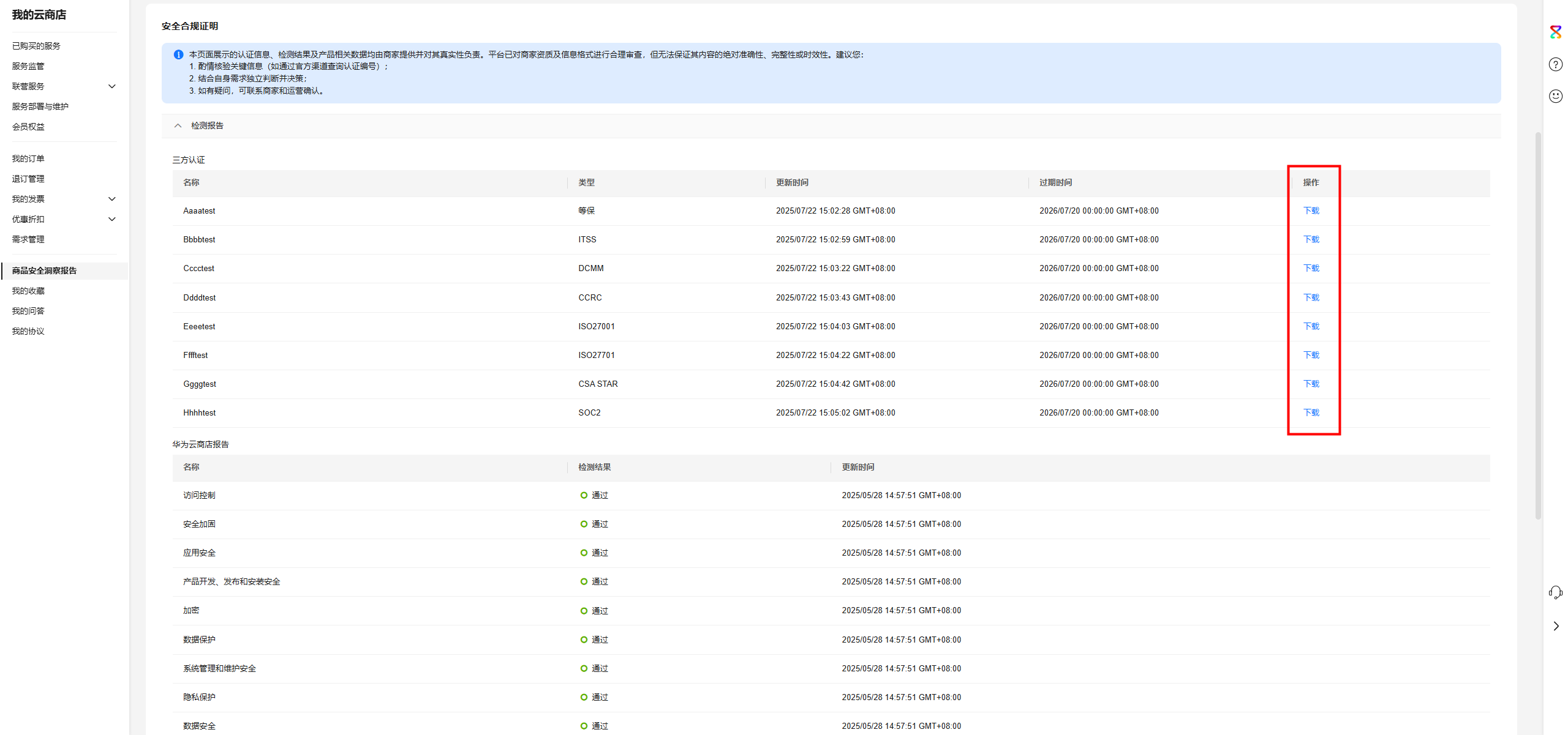 - 查看报告:审核通过后,在“”查看和下载商品安全配置文件。