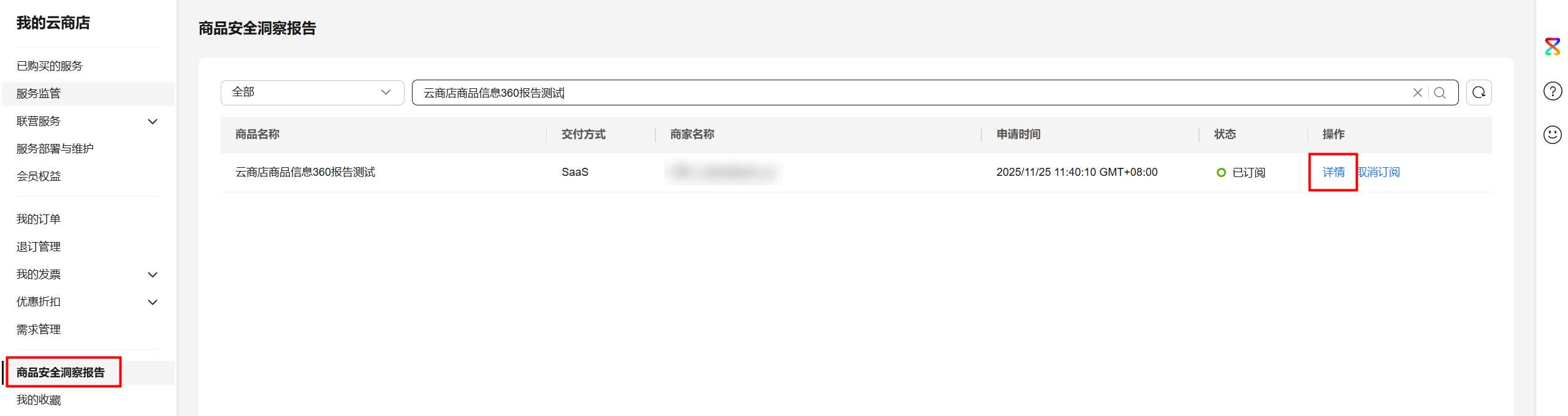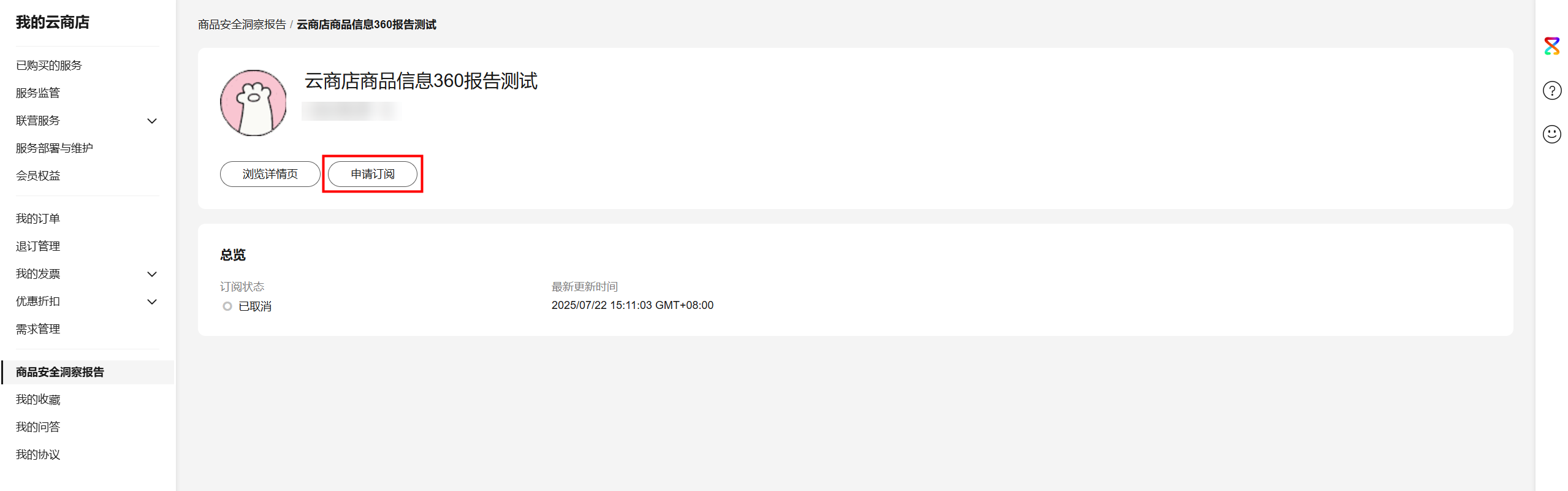 - 申请订阅:单击“申请订阅”。