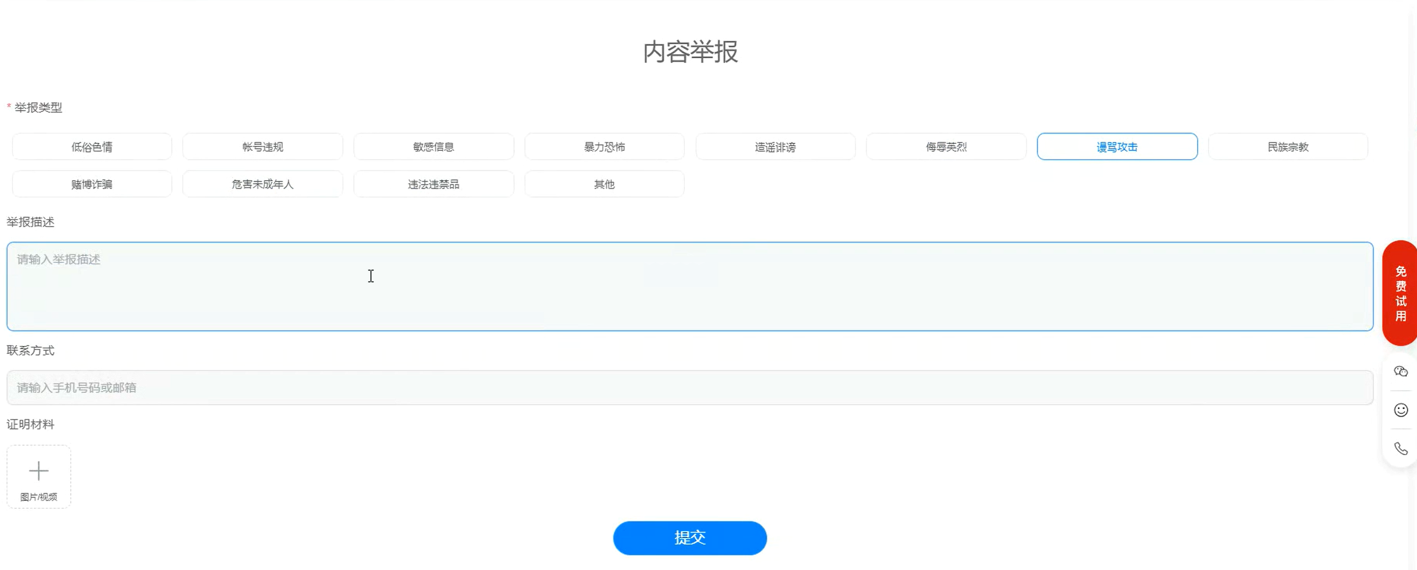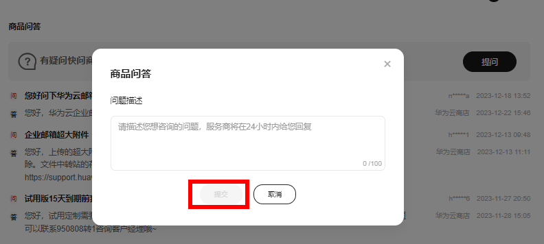 - 在问题编辑框内输入问题描述,单击“提交”。
