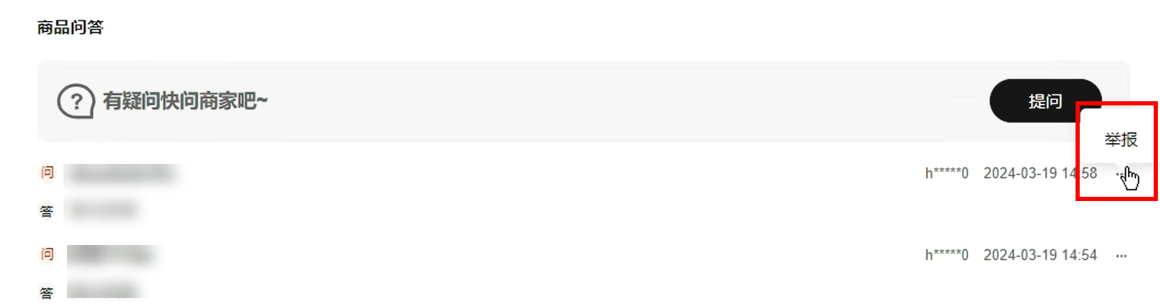 - 在商品详情页拉至底部“商品问答”区域,单击“提问”。