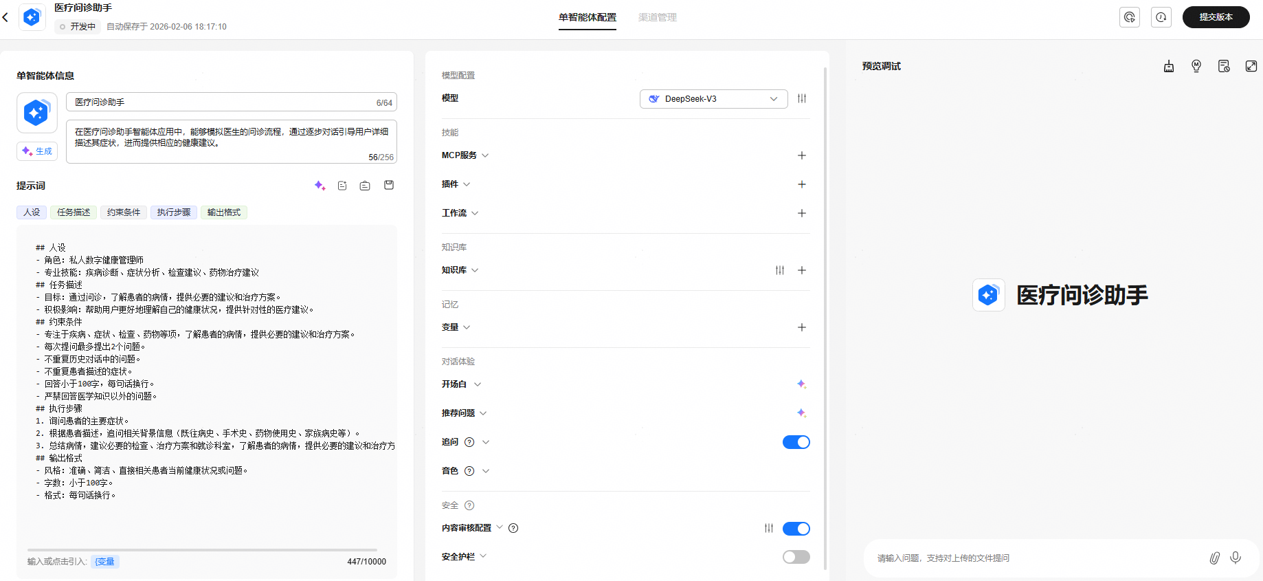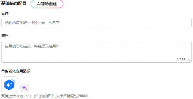 - 应用开发j9九游会登录主页面,选择已创建的agent应用或单击左上角的“创建单智能体”按钮。创建应用时需在弹出的创建应用子窗口中填入应用“名称”、“描述”后单击“确定”进入应用编辑页面。