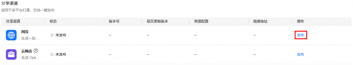 - 发布完成后可以单击“分享”按钮跳转至“渠道管理”页面。