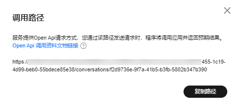 - 鼠标移动到目标工作流,单击“调用路径”,调用路径为工作流的api接口。详细api调用过程请参见通过api调用工作流。