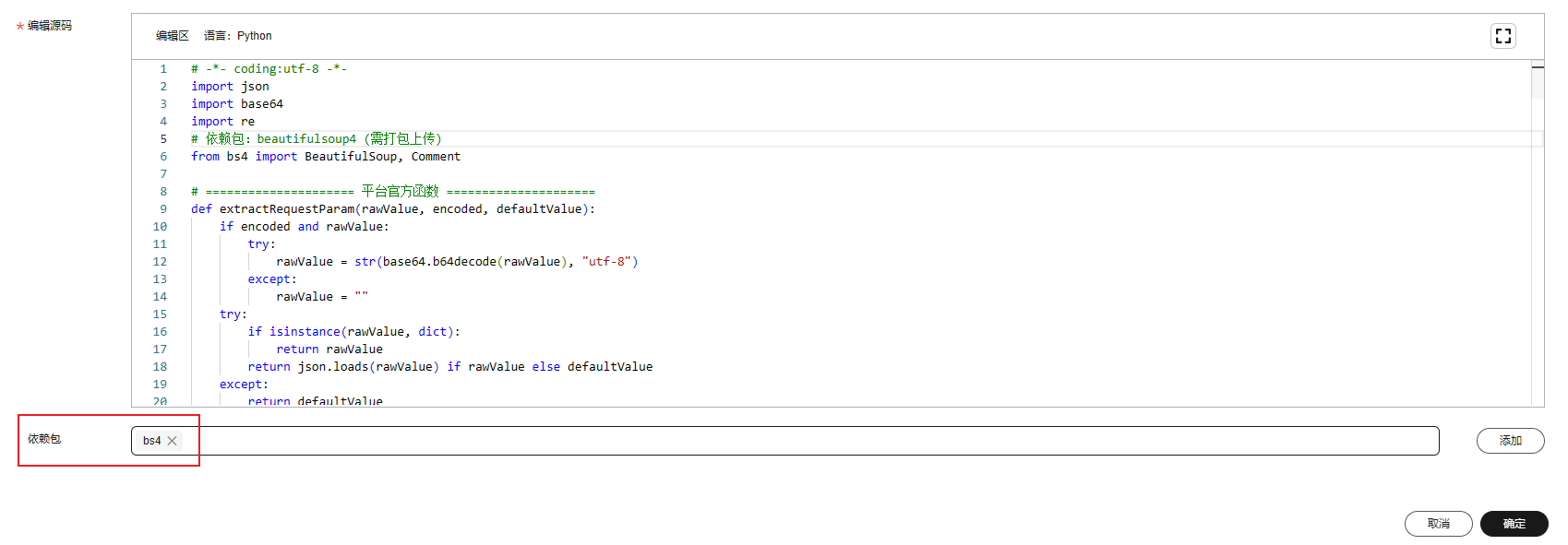 - 约束:请勿修改函数名 handler。平台通过此名称定位并执行函数。