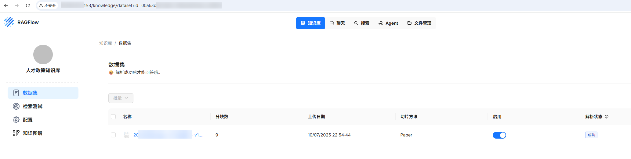 - 在ragflow里创建一个知识库,并上传相关文档。