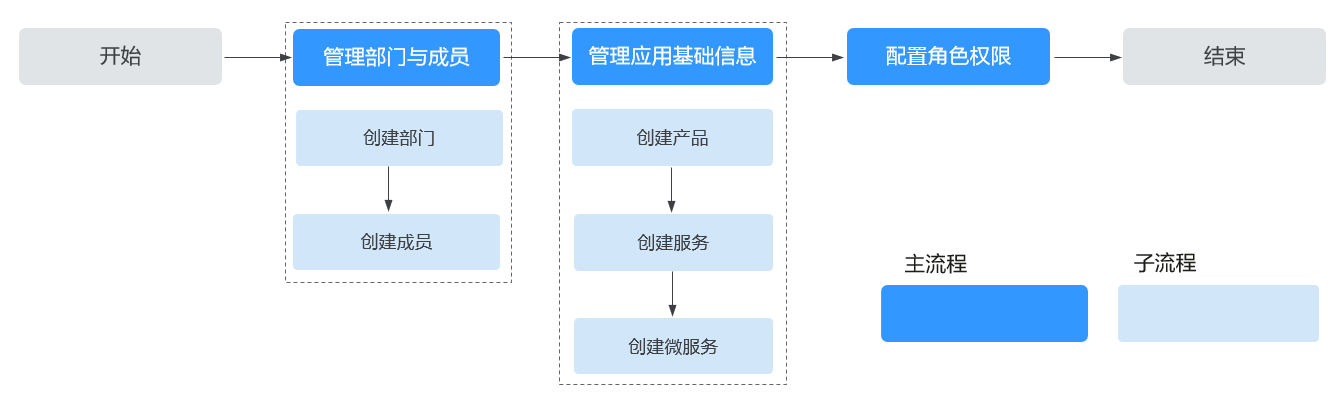 组织管理员可以在appstagej9九游会登录首页进行系统级功能的配置和维护,如组织信息(部门、成员)、应用基础信息(产品、服务、微服务)的新增/修改/删除。