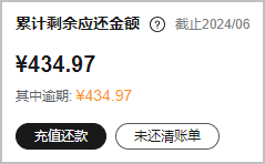 登录费用中心的“总览”页面,“累计剩余应还金额”区域即可展示未结清总金额。