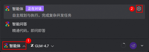- 在聊天界面的输入框下方选择“智能体”,切换到智能体模式。