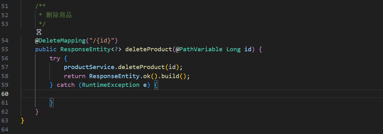 /** * 创建一个新的产品。 * * @param product 包含产品详细信息的product对象。 * @return 如果成功创建,返回包含创建的产品的responseentity; * 如果发生异常,返回包含错误信息的responseentity。 */ @postmapping public responseentity createproduct(@requestbody product product) { - 按下enter键回车,codearts代码智能体将会自动补全缺失的函数体。