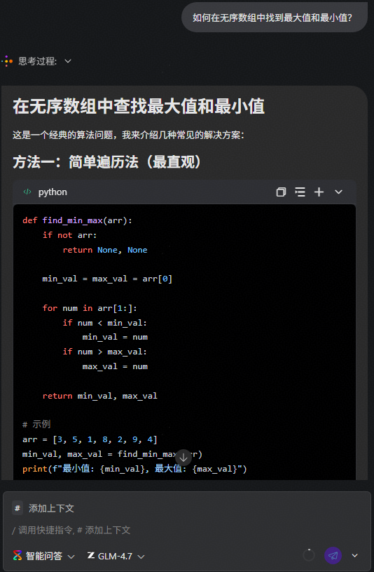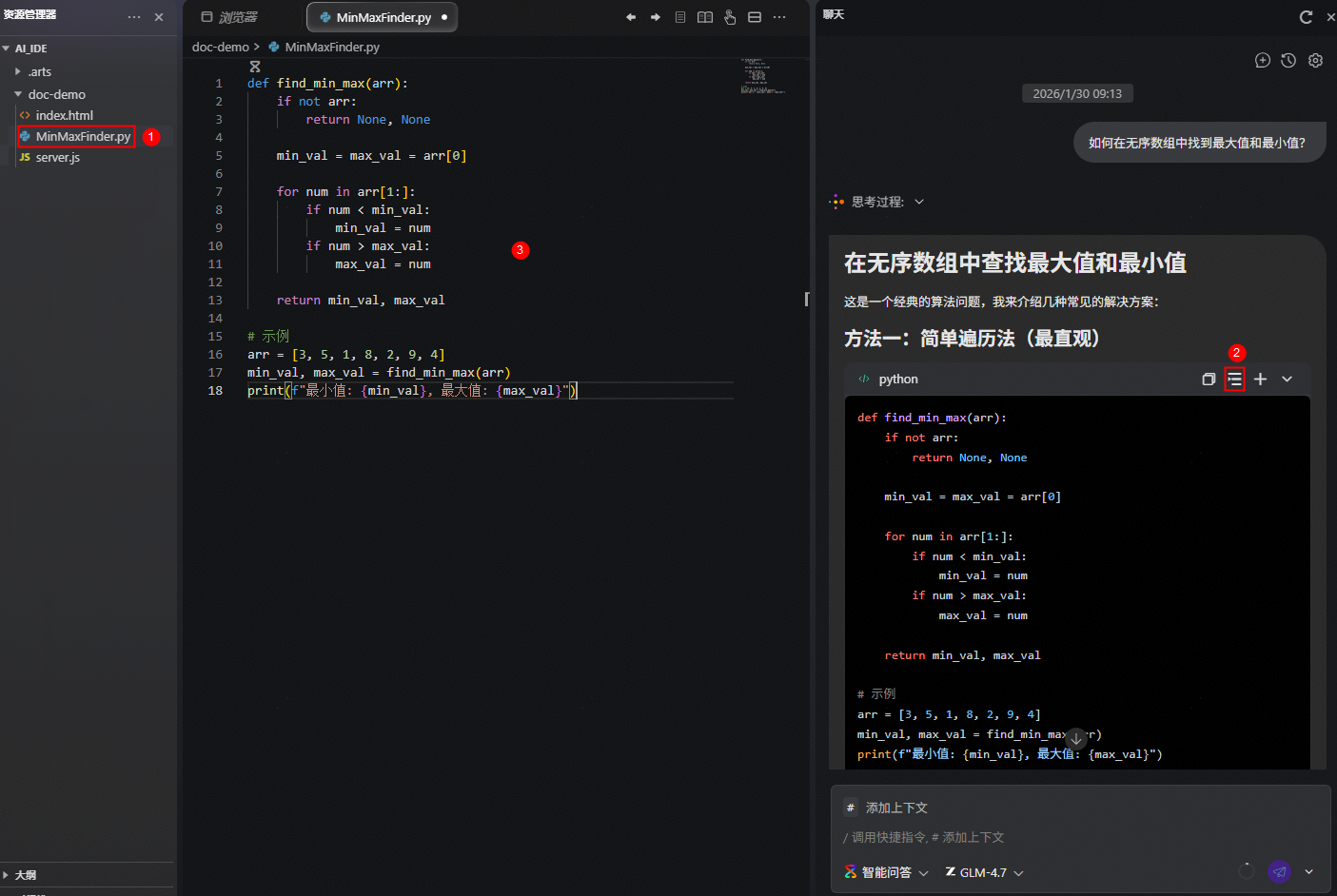 - 快速问答:在编辑区对话输入需求描述,直接进行问答。