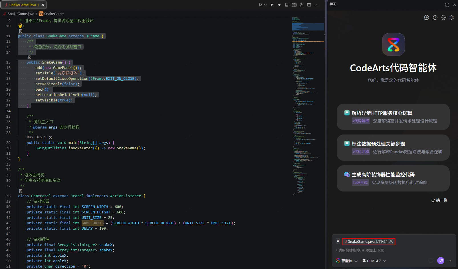 不同工具中codearts代码智能体的界面风格有所差异,本章以其在ide工具中的界面为例进行介绍,实际操作请以所用工具的显示为准。
