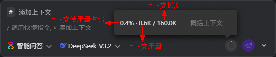 codearts代码智能体提供了一个上下文窗口(如图12),用于实时显示对话中已使用的token占比,帮助您实时查看当前会话的上下文用量,避免超出限制影响对话的连贯性。