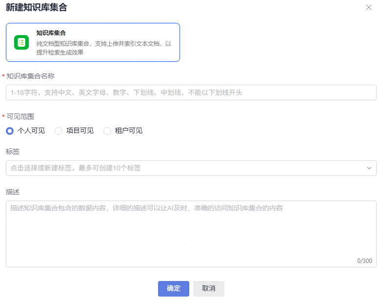 - 个人可见:仅当前用户可见,拥有该知识库集合的所有权限。