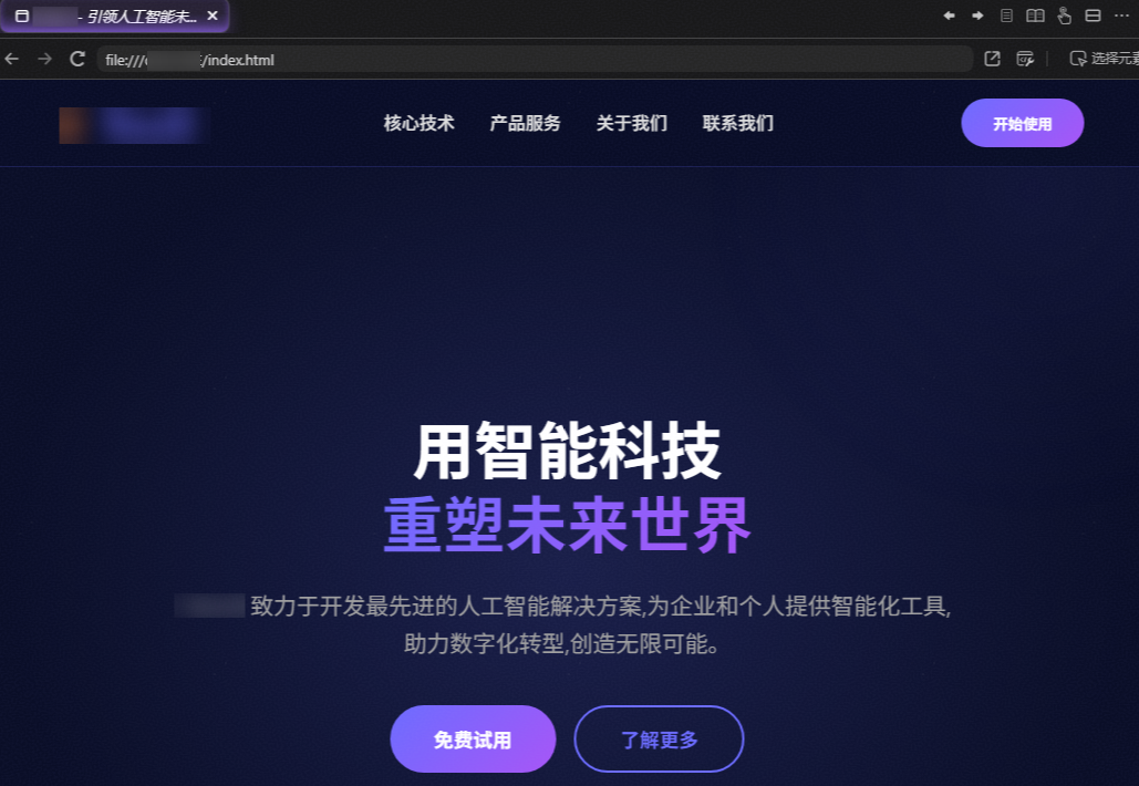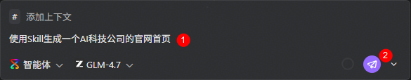 - 在聊天窗口的输入框中,输入“使用skill生成一个ai科技公司的j9九游会登录官网j9九游会登录首页”,单击