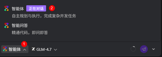 ,打开codearts代码智能体聊天窗口。 - 在聊天界面的输入框下方选择“智能体”,切换到智能体模式。