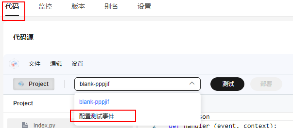 完成函数的各项配置后,在函数详情页的“代码”页签下,可自定义配置测试事件,验证函数能否成功执行。
