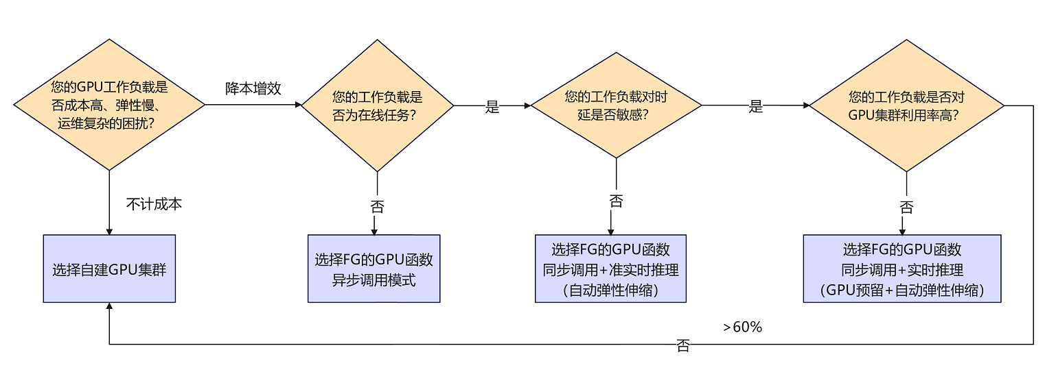 函数计算平台提供了默认的按量gpu实例之外的另一种gpu使用方式——预留gpu实例。如果您希望消除冷启动延时的影响,满足实时推理业务低延迟响应的要求,可以通过配置预留gpu实例来实现。更多关于预留模式的信息,请参见为函数配置预留实例。