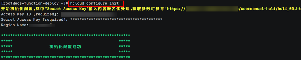 需要输入access key id、secret access key和region name,初始化成功如图3所示。