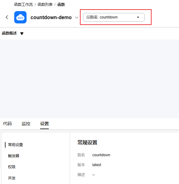 - 单击“确定”,完成别名的创建,将自动跳转到别名函数的详情页。