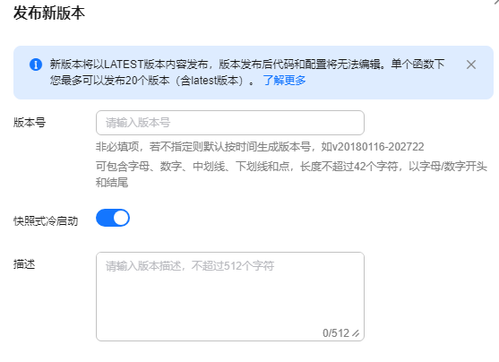- 参考发布新版本发布函数版本,发布版本时开启“快照式冷启动”,触发快照的自动化制作。