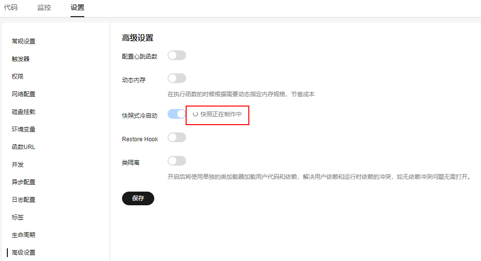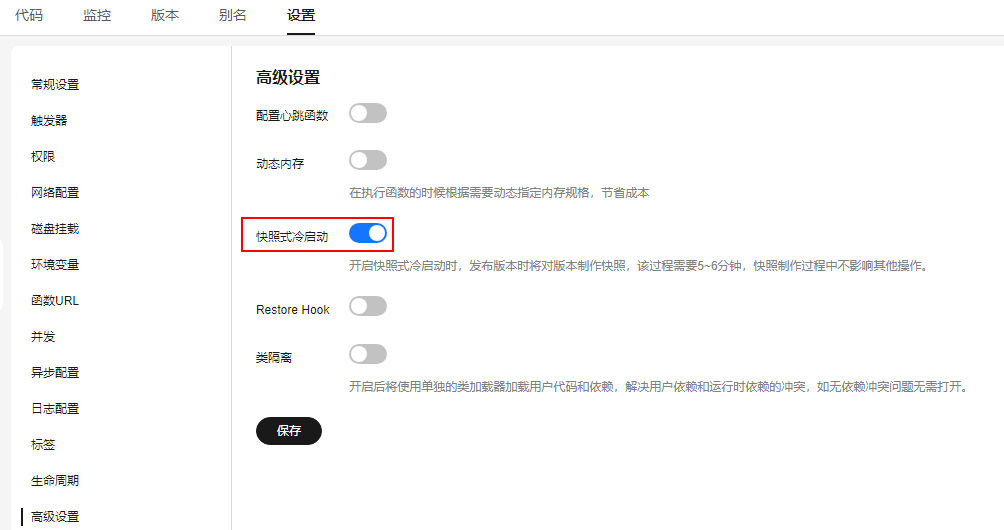 - 当前仅java运行时函数支持配置快照式冷启动。