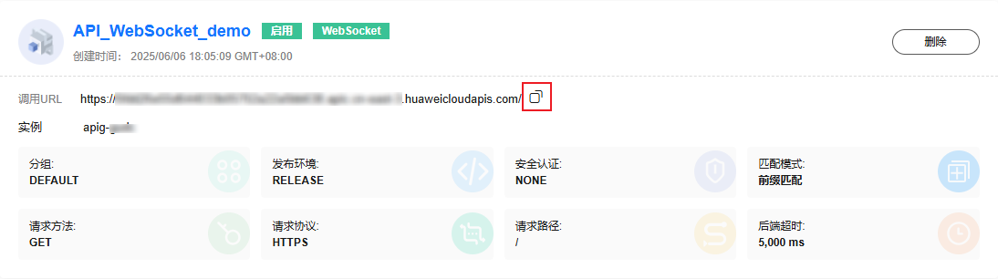 - websocket配置当前仅支持“华东-上海一”区域使用。
