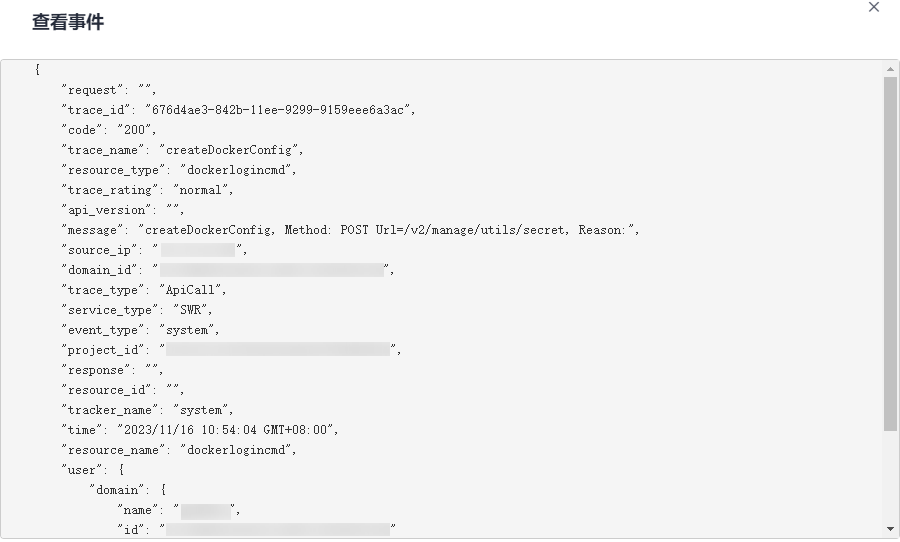 查看事件中的trace_type的值为“systemaction”时,表示本次操作由服务内部触发,该条事件对应的操作用户可能为空。