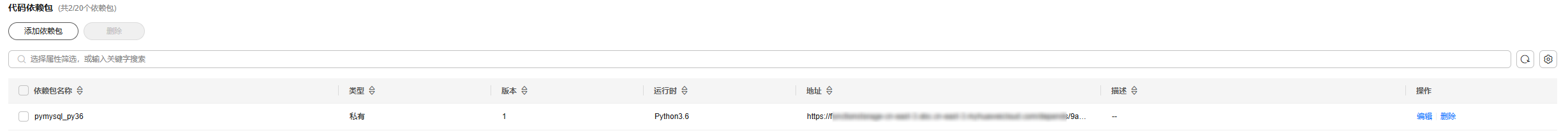- 登录函数工作流控制台,在左侧导航栏选择“函数 > 依赖包管理”,进入“依赖包管理”界面。