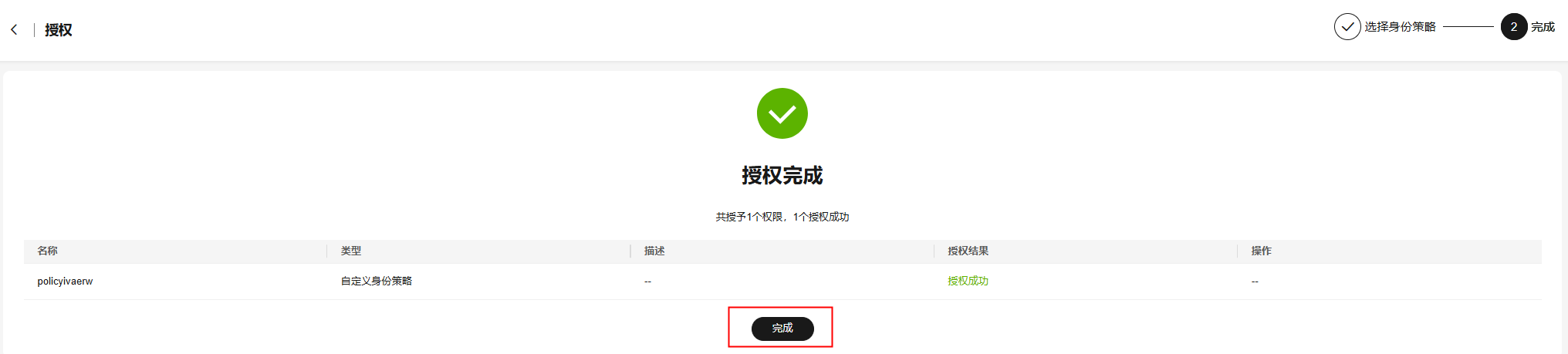 - 单击“完成”,跳转至“用户组 > 授权记录”页签,确认修改后的用户组权限。