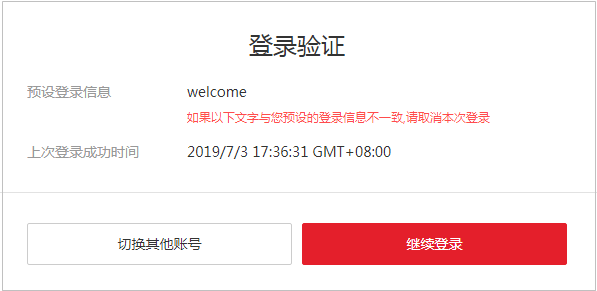 如果开启最近登录提示,用户登录成功后,将在“登录验证”页面中看到上次登录成功时间,最近登录提示可以帮助用户查看是否存在异常登录信息,如果存在不是本人的登录信息,建议立即修改密码。
