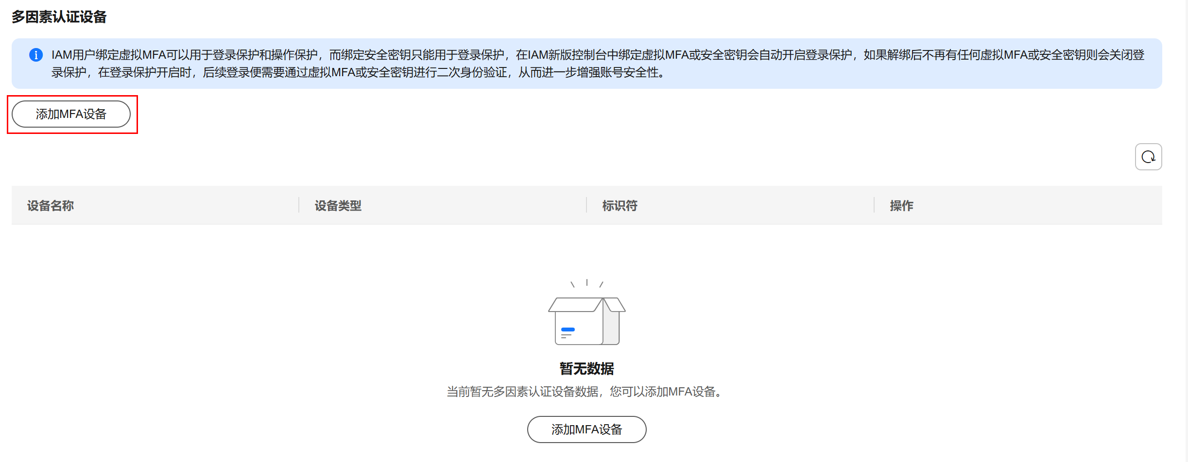 - 指定mfa设备名称。仅支持大小写字母、数字或特殊字符(-_)。