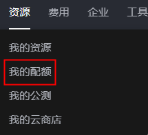 ,选择区域和项目。 - 在页面右上角,选择“资源 > 我的配额”。