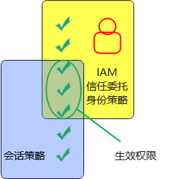 您也可以将会话策略作为调用assumeagency api的参数(可选),进一步限制生成的临时安全凭证的权限,其权限是委托或者信任委托的身份策略与会话策略的权限交集。