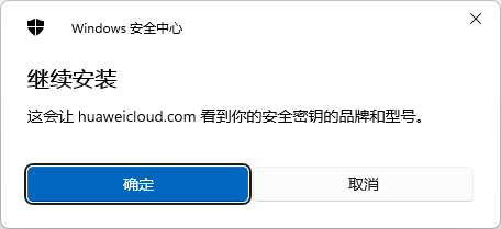 - 单击“确定”,继续安装安全密钥。