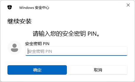 - 输入安全密钥的pin码,单击“确定”。