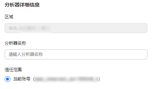 - 配置信任范围,分析器将会分析信任区域中支持分析的所有资源类型。选择“当前账号”。