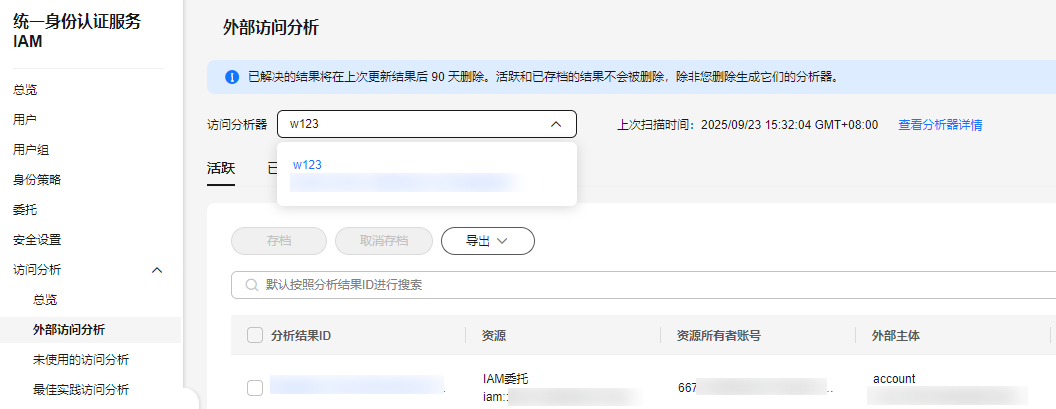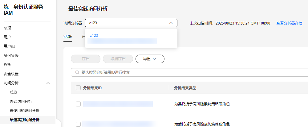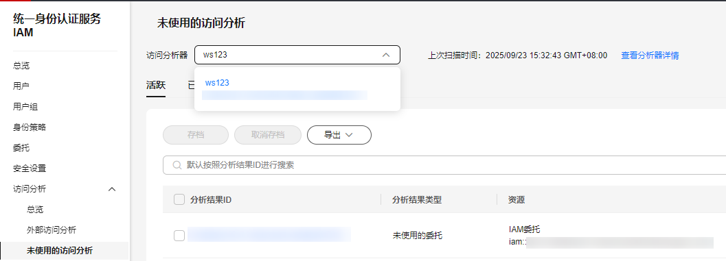 - 在统一身份认证服务的左侧导航窗格中,选择“访问分析 > 未使用的访问分析”。