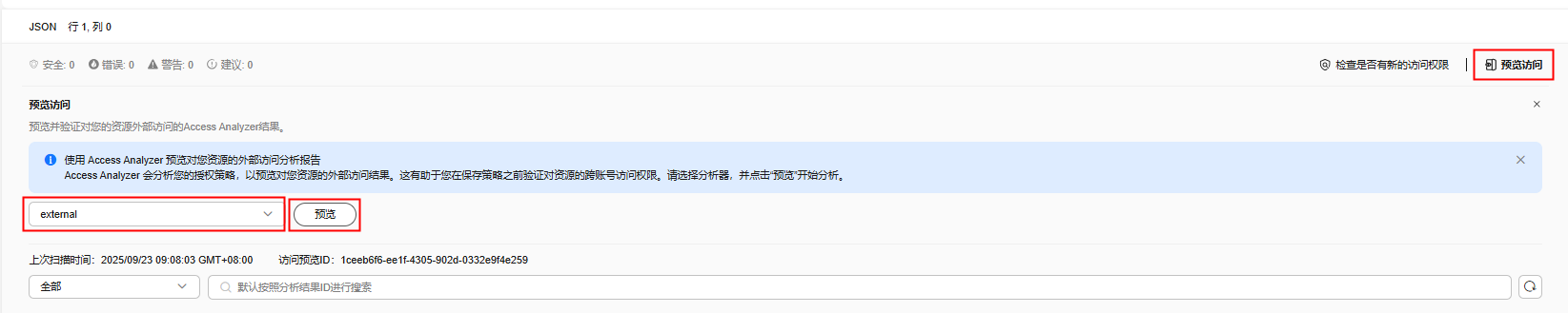 访问分析器将会分析授权策略,显示资源的外部访问结果预览。可以在保存信任策略前根据结果进行调整。