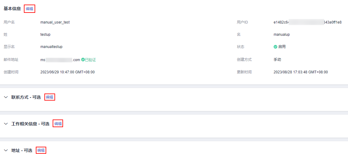 - 单击基本信息后方的“编辑”,修改用户基本信息。
