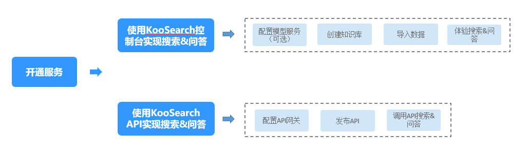 首先需要开通服务,开通服务时会选择版本规格、配置一系列参数来创建一个实例,后续可以用此实例实现搜索问答,具体请看。 |